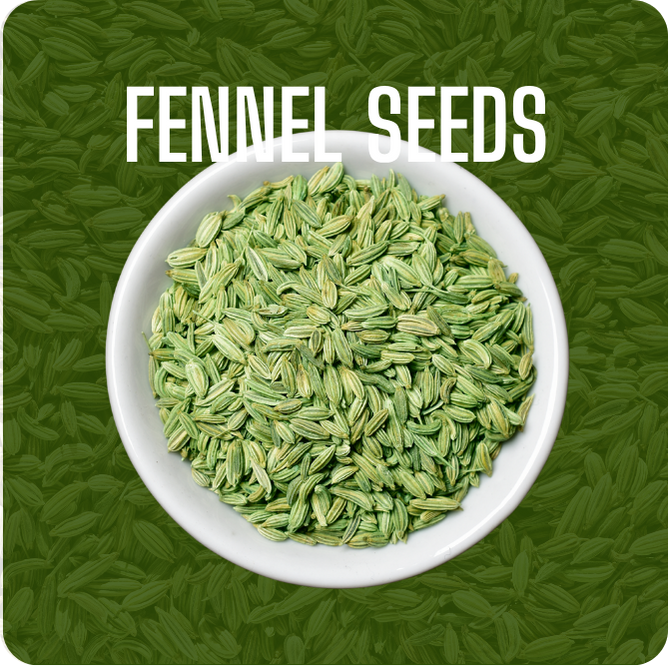 Fennel Seeds, commonly known as Saunf in India, are the dried fruits of the Foeniculum vulgare plant. These small, green, oval-shaped seeds are known for their sweet, anise-like flavor and cooling aroma. They are widely used in Indian, Middle Eastern, Mediterranean, and Chinese cuisines.